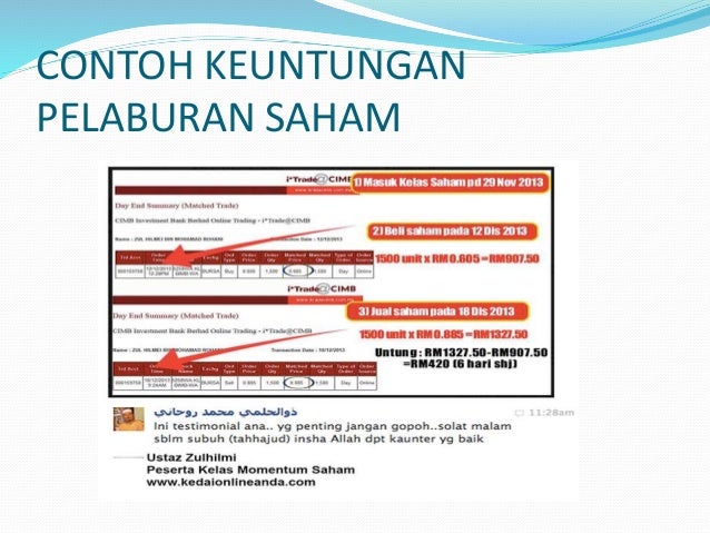 Panduan melabur dalam saham. Berikut pula adalah bukti-bukti lain bagi keuntungan yang saya perolehi hasil daripada menggunakan sistem saham ini. Tak ada orang yang lahir-lahir terus pandai melabur dalam saham. Ada banyak video YouTube dan ebook yang ajar teknik-teknik asas untuk buat duit di pasaran saham.
